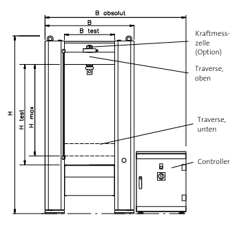 - Zusätzliche Prüfräume: seitlich oder oberhalb der Fahrtraverse