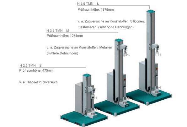 Dank der Verfügbarkeit in drei verschiedenen Prüfraumhöhen lässt sich die Maschine optimal an individuelle Prüfanforderungen und Platzverhältnisse anpassen.