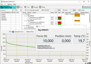 Die EC 10 Software für den Tieftemperatur-Druckverformungsrest LTCS überwacht die Temperatur während der Prüfzeit und zeichnet die Wiederfindung beim Loslassen des Prüflings auf.