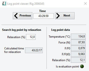 Suchen Sie gezielt nach bestimmten Relaxationsstufen oder navigieren Sie durch die vollständige Liste der Log-Punkte für eine präzise Auswertung.